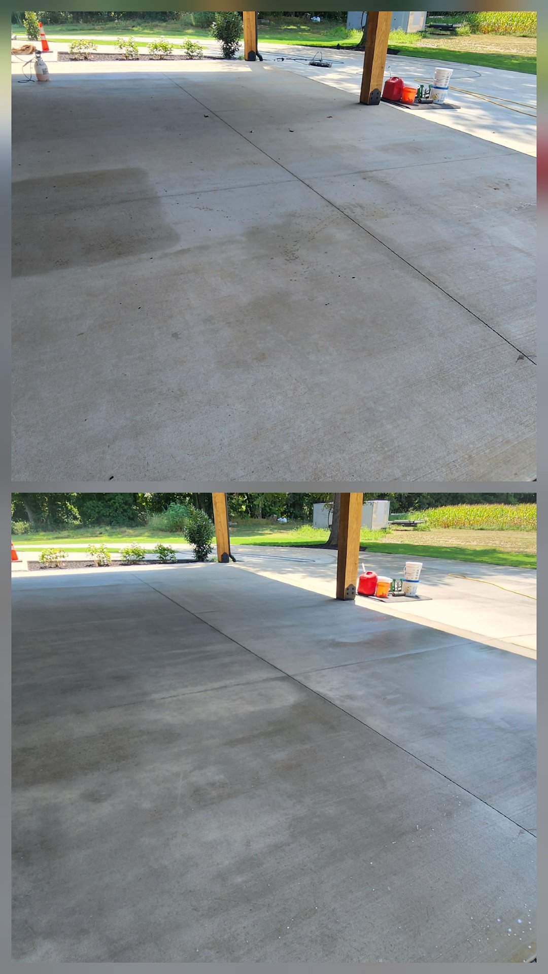 * Patios & Driveway were thoroughly cleaned, removing all dust, dirt and any staining caused by the high traffic during the construction process. Extra care cleaning new concrete took priority by using proper pressures and techniques to ensure no damage.